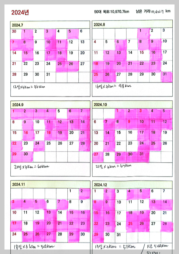 2024년 한 해를 뛰고, 올해 8월까지 총 20개월을 뛴 거리를 대략 합치니 1,308km이다. 12% 정도 달성한 것이다.